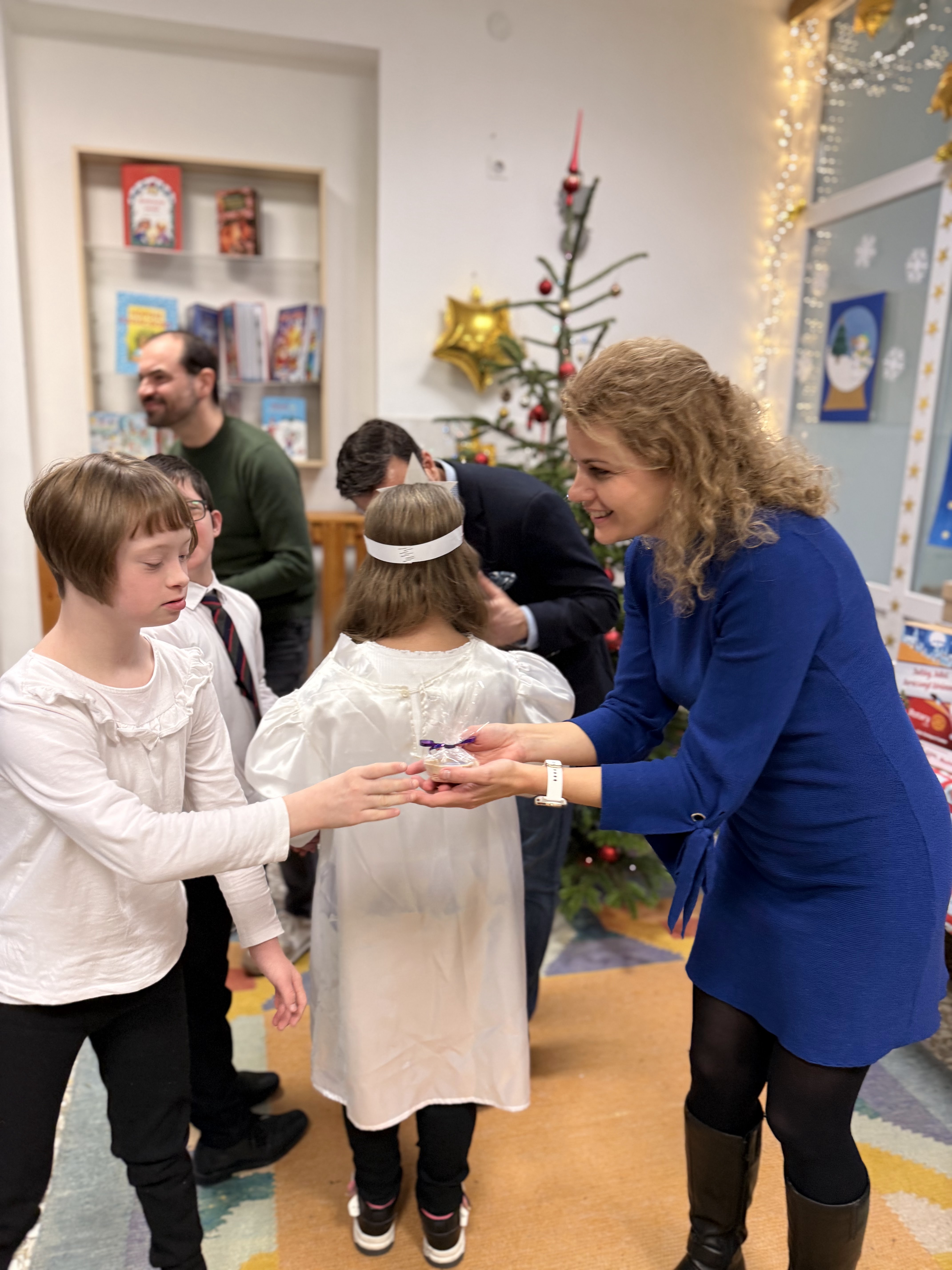 Másnap az Újbudai Montágh Imre Általános Iskola, Óvoda, Fejlesztő Nevelés-oktatást Végző Iskola, Készségfejlesztő Iskola és EGYMI karácsonyi ünnepségére voltunk hivatalosak. A bátor kisdiákok és a fantasztikus gyógypedagógusok közös előadása mindannyiunkat meghatott. Az ünnepség végén a cipősdobozok átadásával a gyerekek öröme leírhatatlan volt. Többen az ajándékok után is visszaszaladtak hozzánk egy-egy ölelésre, ami mindannyiunk szívét megmelengette.