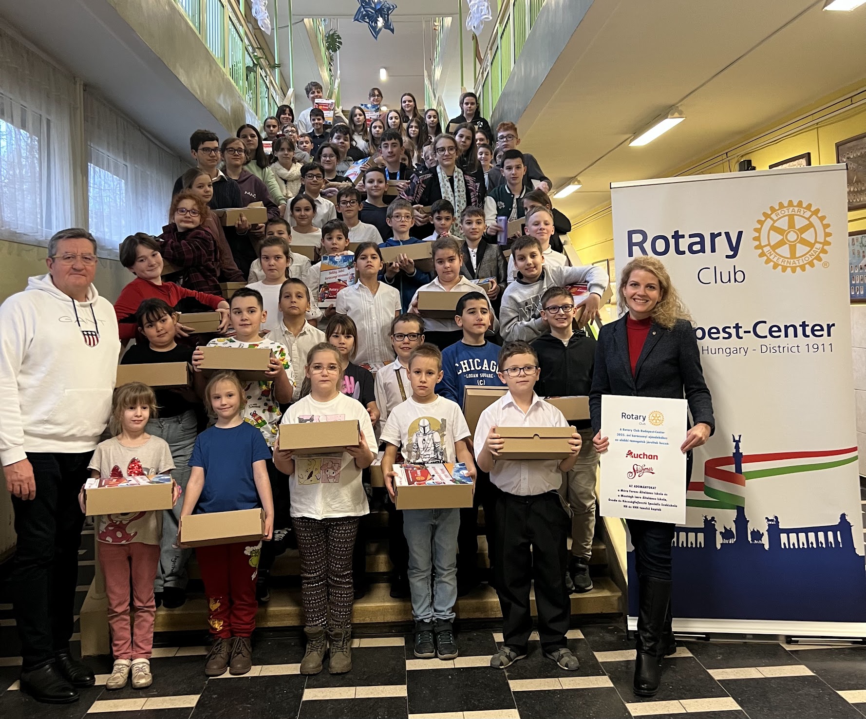 A dobozok tartalmát klubunk ajándékai mellett a Lancaster Sunrise Rotary Club, az Auchan és a Stühmer Édesség nagylelkű támogatásával sikerült megtölteni. Nagyon köszönjük, hogy évek óta számíthatunk felajánlásaikra!